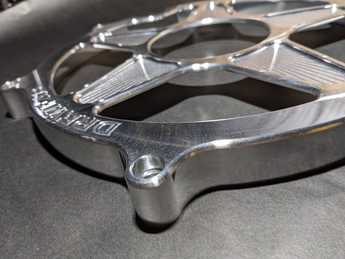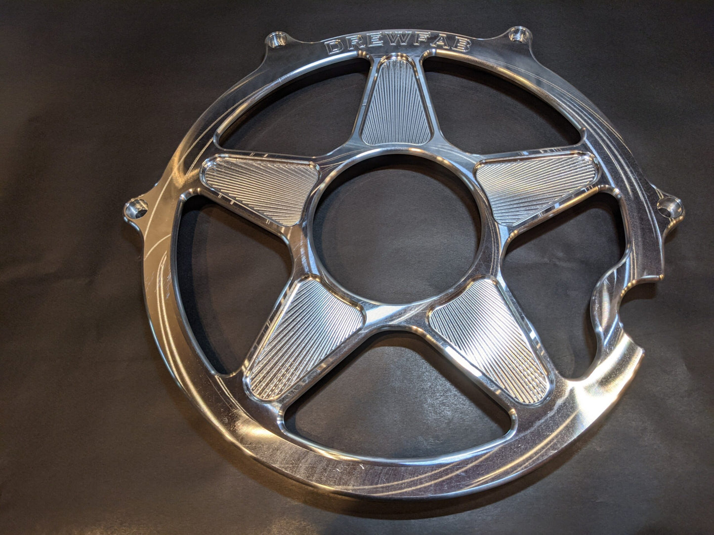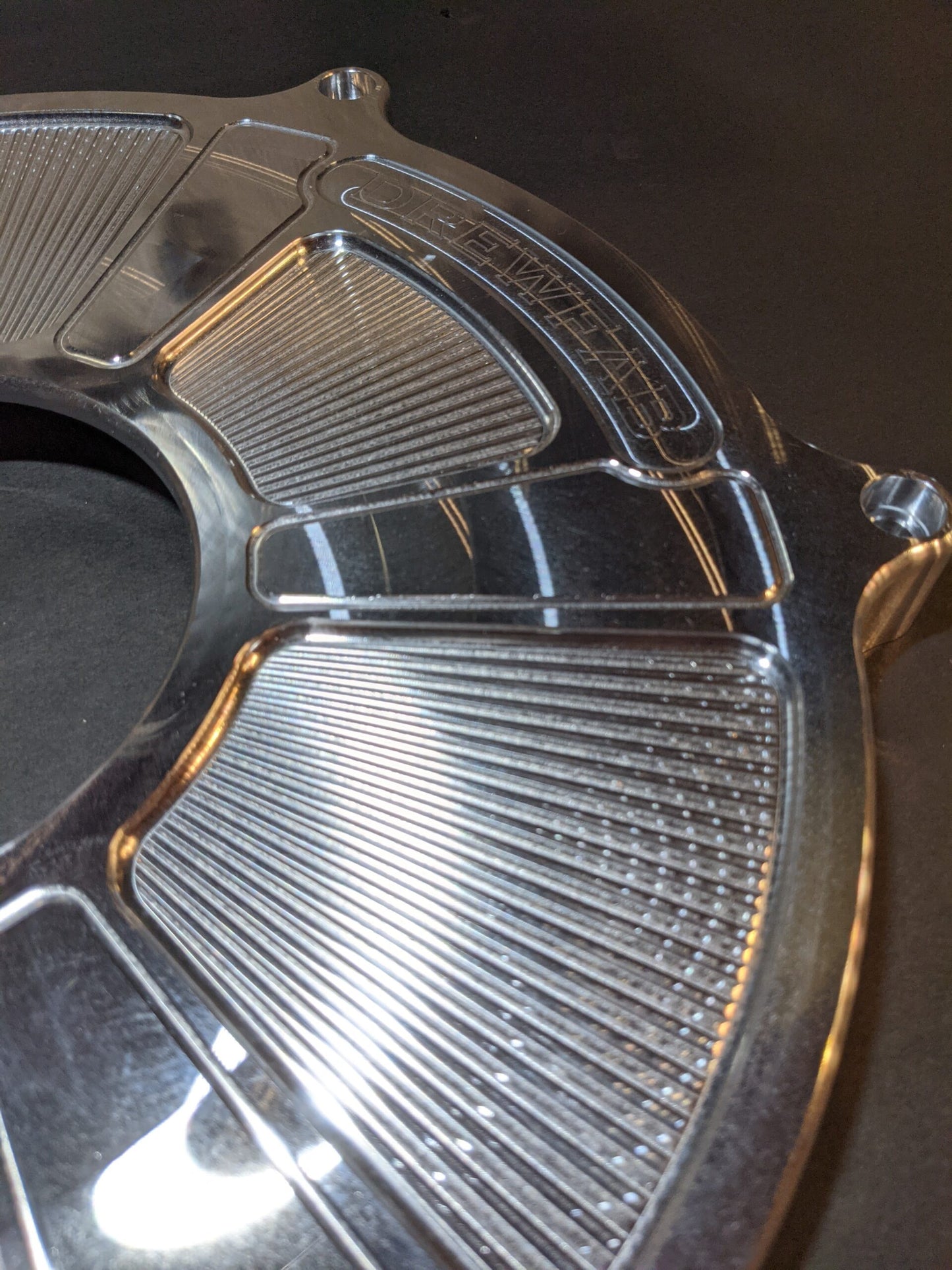 - Race weight version features "windows" to remove weight and allow sight to flywheel