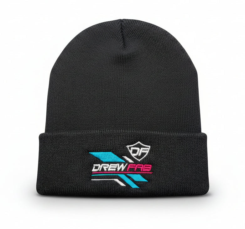 12" YP Classics fold black beanie with "Retro" colored DREWFAB Logo.